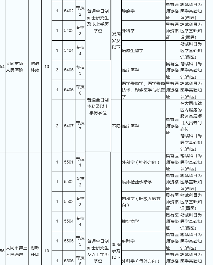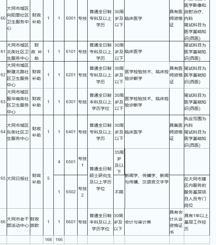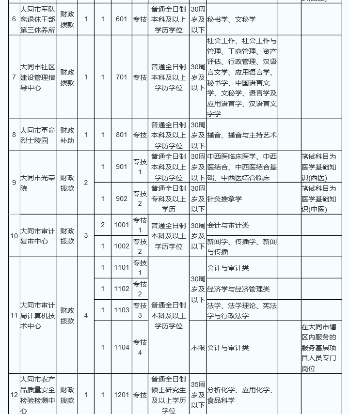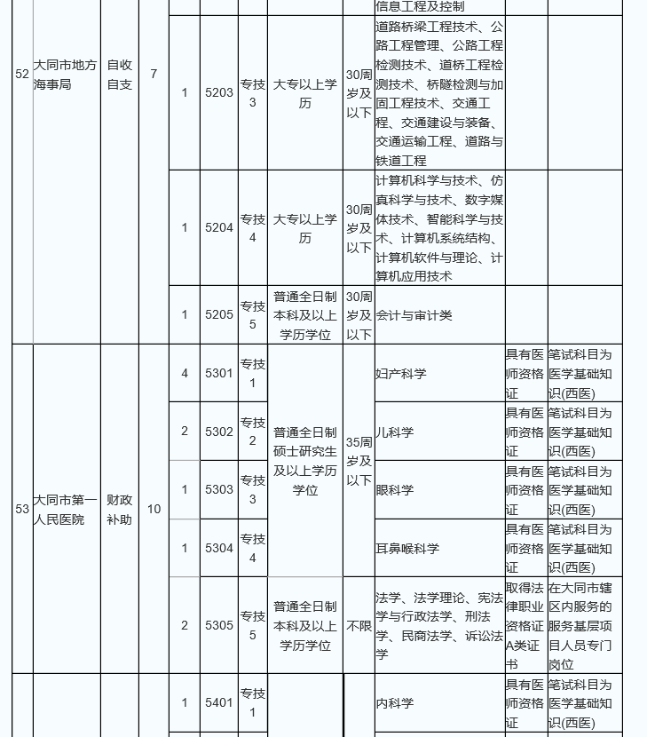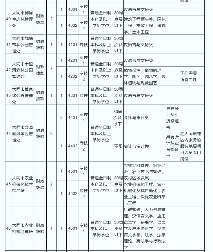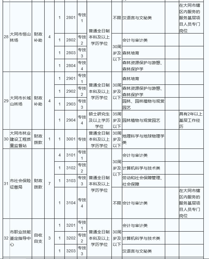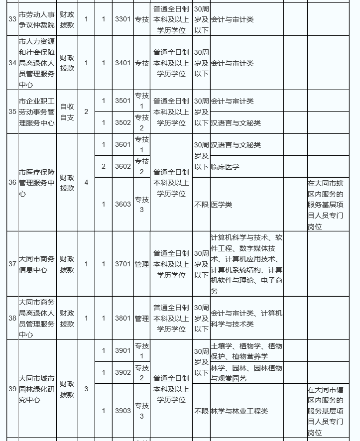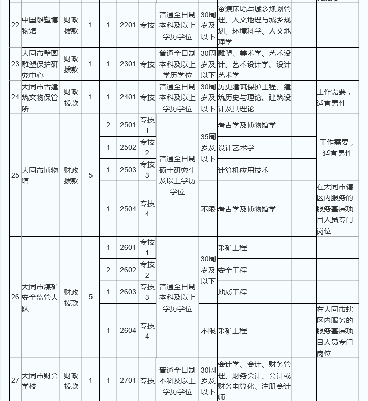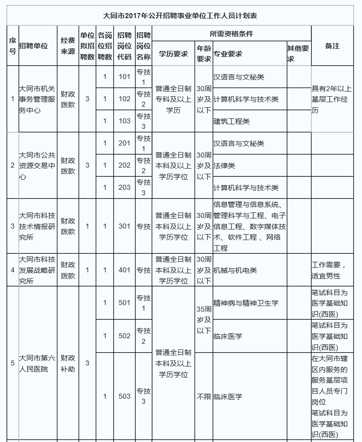大同市2017公開招聘事業(yè)單位職位表