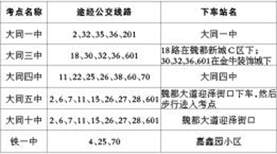 您當(dāng)前的位置:大同人才網(wǎng) >> 大同人才網(wǎng)資訊 >> 大同新聞 >> 大同城區(qū)乘公交車赴考怎樣選擇更合理的線路