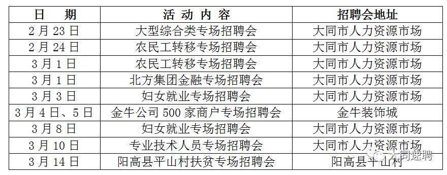 大同市2017年“春風(fēng)行動”系列活動-招聘會時間安排